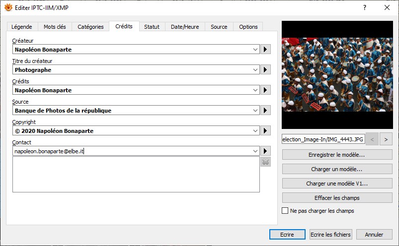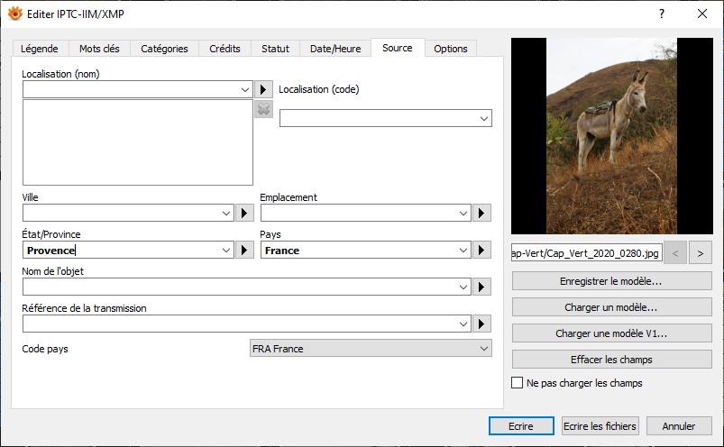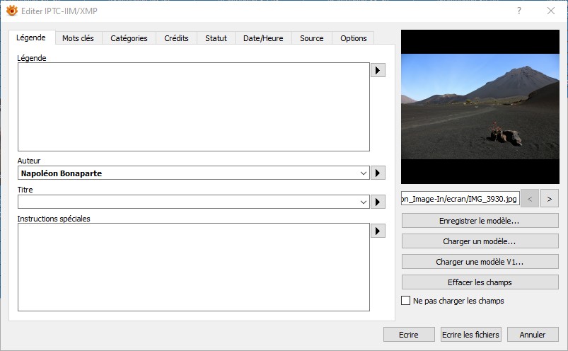 Ces nouvelles données s’ajoutent aux précédentes. Vous l’avez compris, en procédant dans cet ordre : les données les plus générales puis par ajouts successifs les données plus spécifiques, vous caractérisez rapidement des ensembles importants de photos. Vous pourrez terminer par quelques légendes ...c’est un peu plus long.
